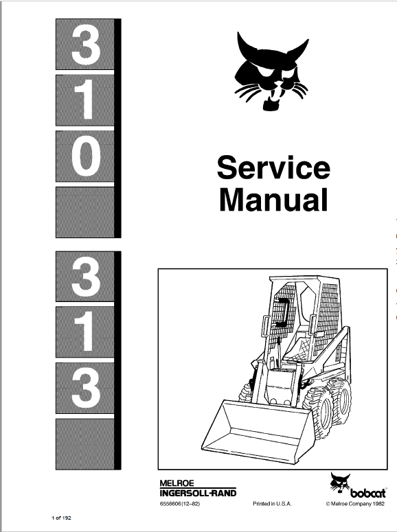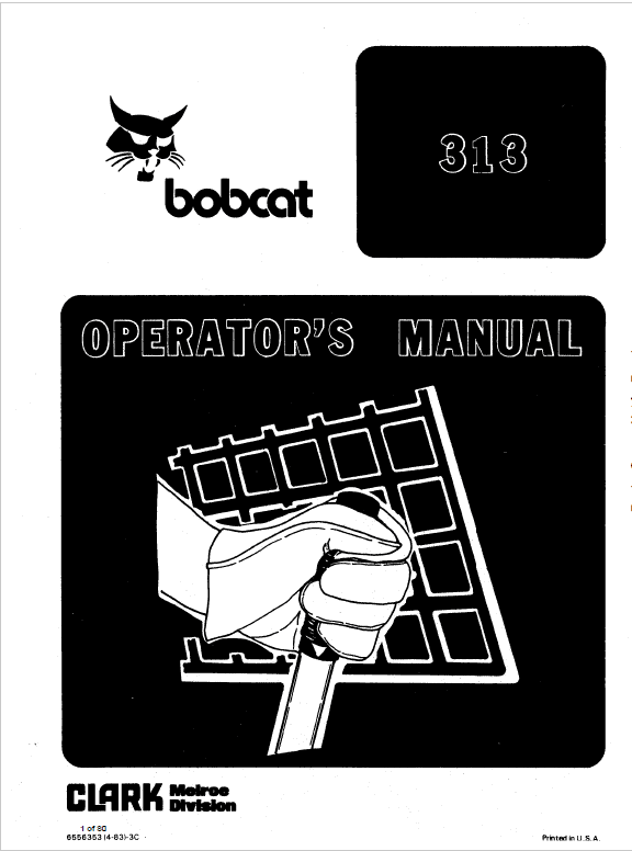 This manual gives instructions for correct servicing and adjustment of the Bobcat, and overhaul instructions of the hydraulic system, electrical system, engine, and general mainframe parts.