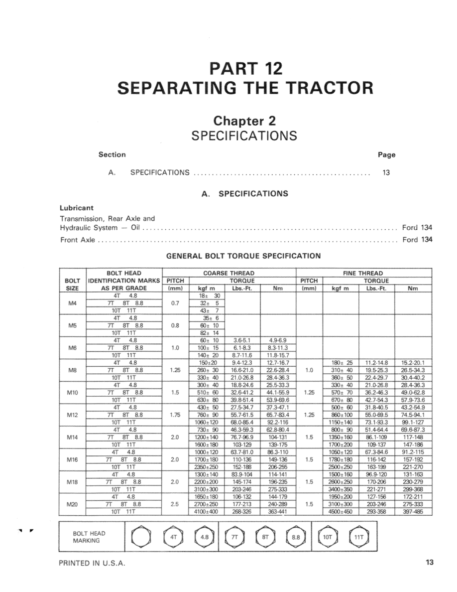 The comprehensive repair manual covers all systems for these models. Key sections include engine and fuel system servicing, electrical system, clutch and transmission, power take-off, hydraulic system, rear axle and brakes, steering system, wheels and tires, and tractor separation procedures. The manual also provides exploded component diagrams, wiring schematics, lubrication charts, torque specifications, and troubleshooting guides to ensure accurate servicing and long-term reliability.