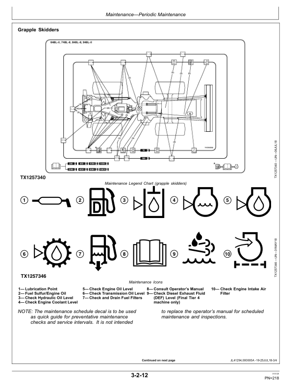 John Deere 640L-II, 648L-II, 748L-II, 848L-II, 948L-II Skidders Operator’s Manuals (OMT412049X19)