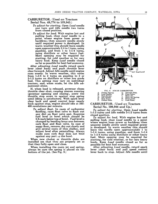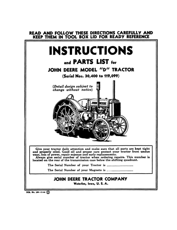 John Deere Model D Tractor (030400-) Operator’s Manual (DIR108)