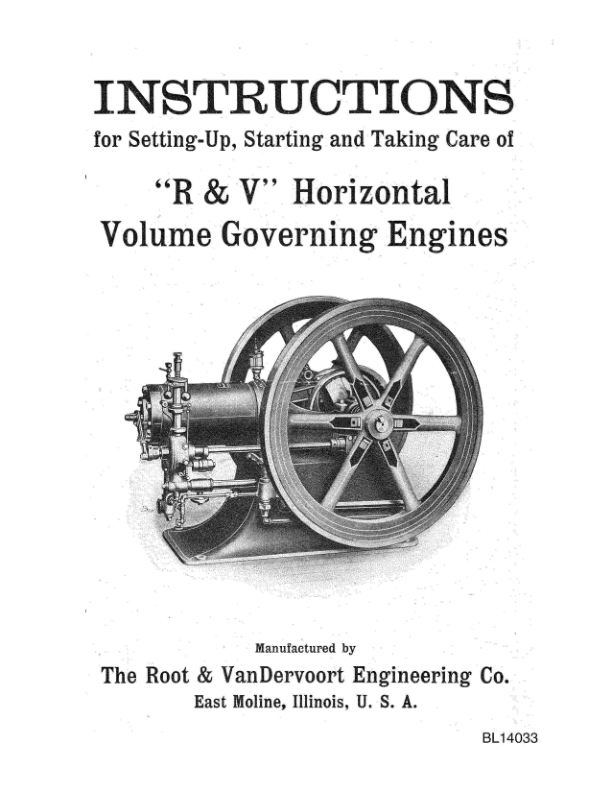 John Deere R & V Horizontal Volume Governing Engine Operator’s Manual (BL14033)